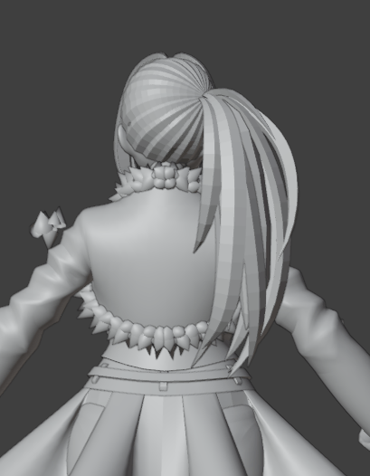 난 수정작업을 지극히 싫어하는 편이다. 대부분의 경우 들인 시간에 비해 티가 잘 안난다. 어차피 마감 근처가 되면 확인없이 때려박을 리소스. 없는 실력으로 백 번 수정해봤자 뭐 더 나은게 나오겠는가? 차라리 다시 할 일이다. 근본이 잘못된 건 어차피 뭘 해도 안된다. 그런 의미에서 아이시의 머리는 근본이 잘못되어 있었다. 실수였다. 작업할 땐 왜 생각이 안났을까. 포니테일말고 옆으로 묶어야지…모델링은 그렇다쳐도 리깅할 때까지 생각이 안나다니. 이제라도 교정을 해보자.