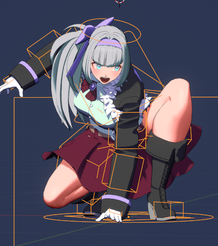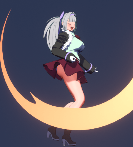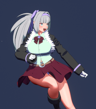다리를 이처럼 구부린 동작의 경우의 치마는 늘 문제다. 일단 아이시의 치마가 좀 낮은 것도 문제이긴 한데, 그와 상관없이 대부분 문제가 일어나는 구간이 바로 저 부분이다. 로우폴리곤 게임이라면 치마를 다리에 붙여 움직였을텐데 표현이 정교해지다보니 다양하게 새로운 문제가 생긴다. 다음 번이 있다면 반드시 고려해야 할 문제다.