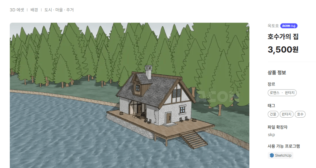 일단 호수가 카페설정은 유지하자. 건물이 한채 있지만 화려하면 안된다. 마침 에이콘에서 적당한 걸 발견했다.