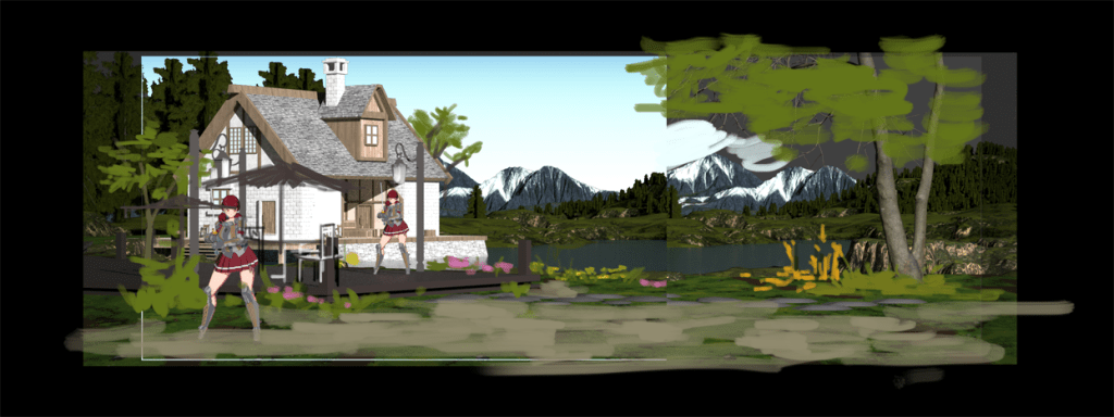 이러면 이미지를 비교적 눈높이에 맞춰준다. 하지만 여전히 원근이 적용된 상태이기 때문에, 화분이나 풀같은 작은 소품만 가능하다. 소품을 모델링하거나 찾는 수고를 생각하면 상당히 쓸만할 지도 모른다.