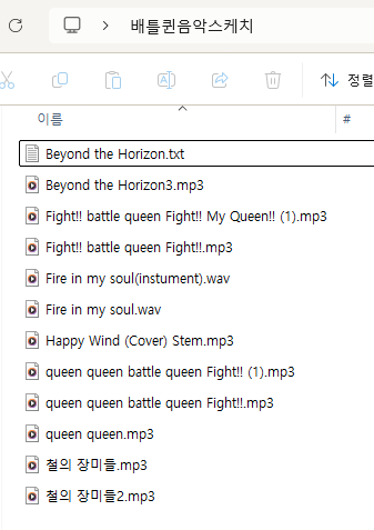 더불어 음악작업들의 스케치. SUNO를 이용하여 초안을 뽑고 괜찮은 곡일 경우 리믹싱하는 방식으로 작업중이다. 현재는 타이틀곡, 엔딩곡, 그 외 5캐릭터의 테마가 대략적으로 완성된 상태이다.