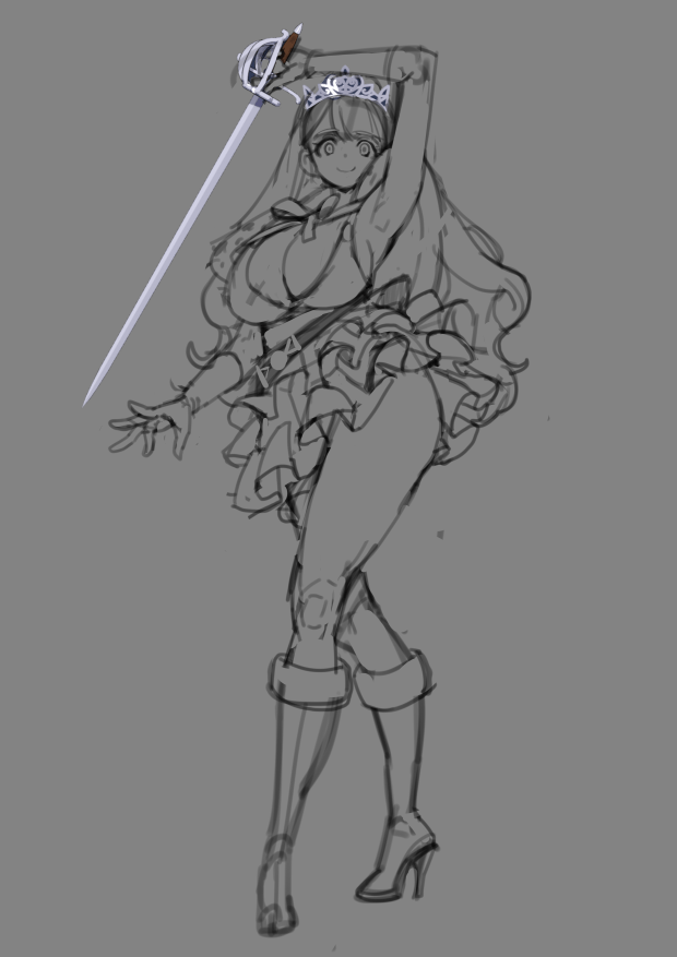 지금까지 엑스트라를 그린 것은 이걸 위한 연습이었다. 새로운 툴인 클립스튜디오에 익숙해지고, 동시에 그림을 잘 그리기 위한 연습. 이제 본게임이다. 모든 캐릭터의 러프를 우선 그린 후, 상호간에 비율을 맞추고 채색에 들어갈 예정이다. 여전히 머리크기가 들쑥날쑥이라 이 과정이 꼭 필요하다. 더불어 러프란 것은 나중에 보면 이상한 부분이 보이기 마련이다. 이에 대한 교정을 하는데도 도움이 된다.