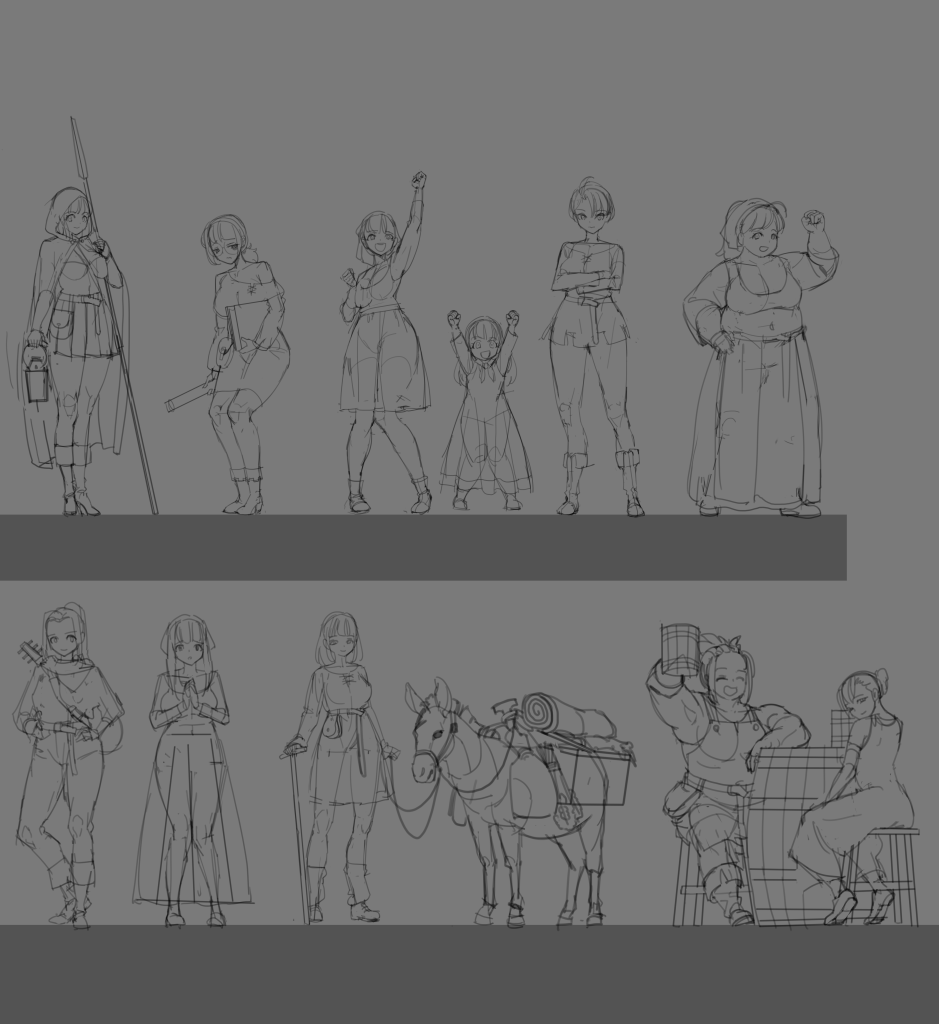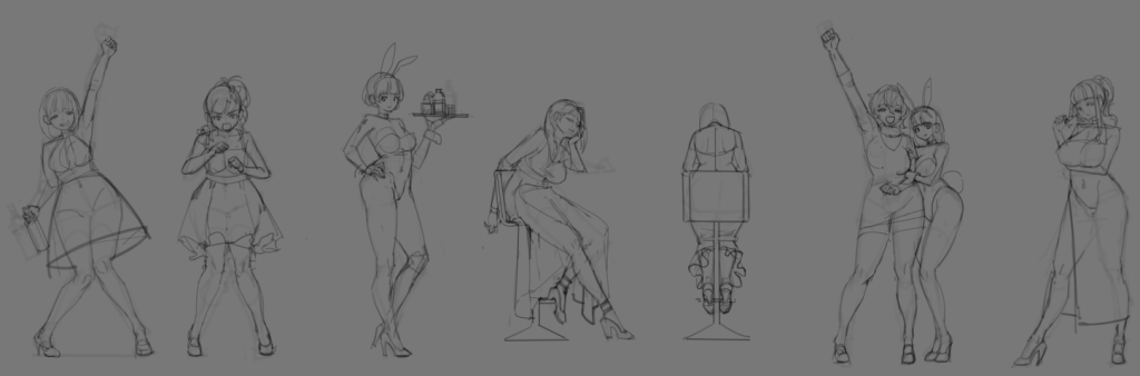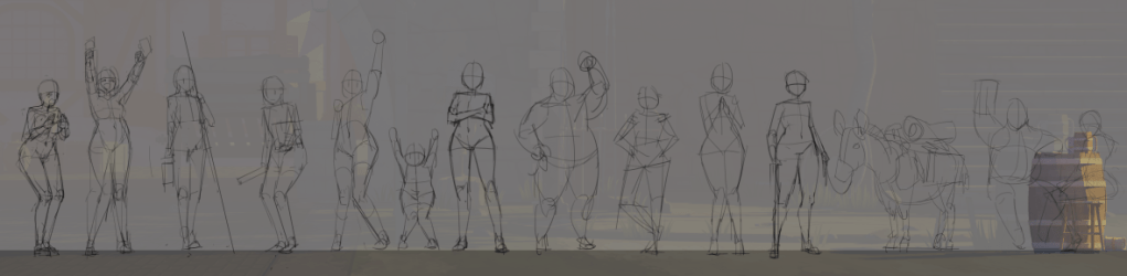 디테일 엑스트라들의 제작이다. 이 친구들은 애니메이션이 필요하다. 먼저 인체러프.