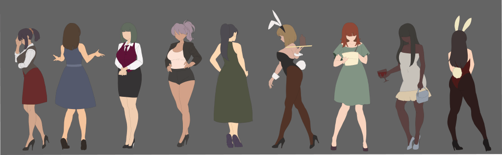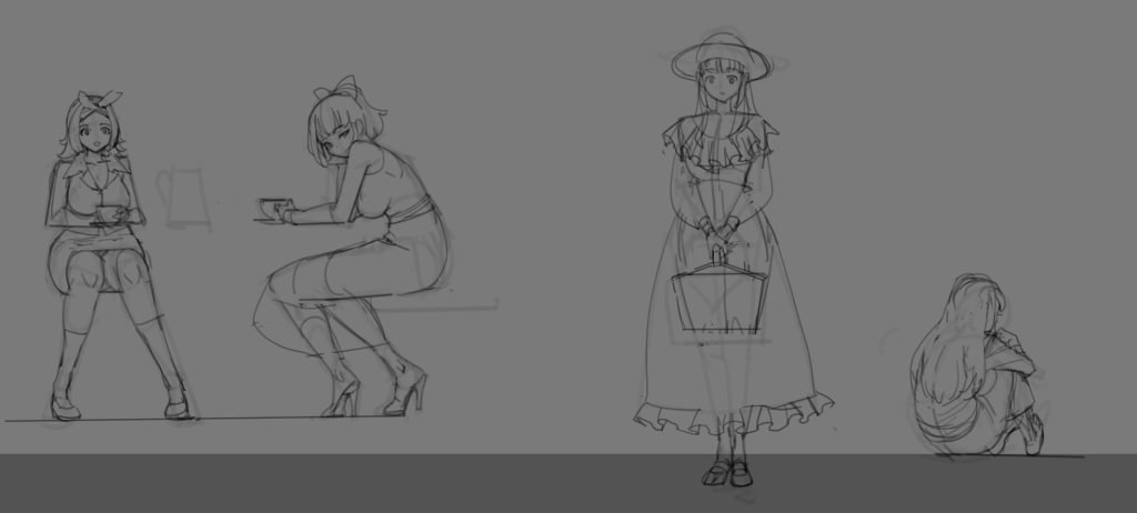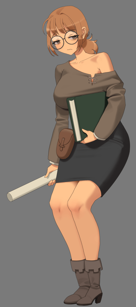 도서관은 차원의 관리자 그 자체로 살아있는 건물과 같다. 여기서 일하는 인물들은 모두 그녀의 딸들로, 오로라도 그 중 한 명이다. 다만 문과 속성의 그녀들 사이에서 오로라는 늘 갑갑합을 느껴 도서관을 탈출하고 싶어한다. 이세계의 차원이 섞이며 온갖 신기한 물건들이 보이기 시작했고 그 물건들에 가장 먼저 손을 댄 건 오로라였다. 설정은 대충 그렇다. 때문에 다른 이들은 정숙하거나 여성스러운 복장을 하고 있다. 이제 그려보자.
