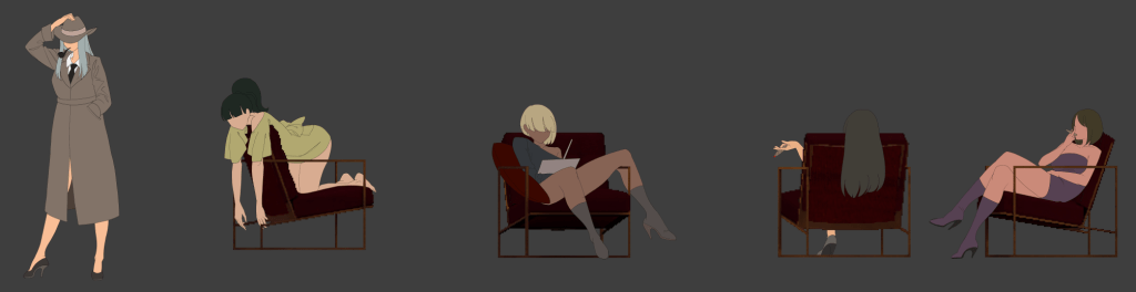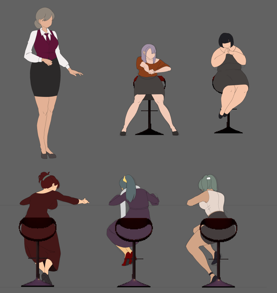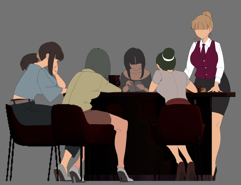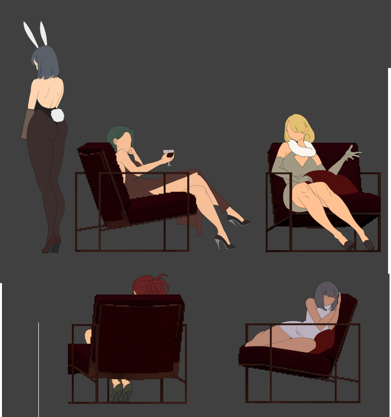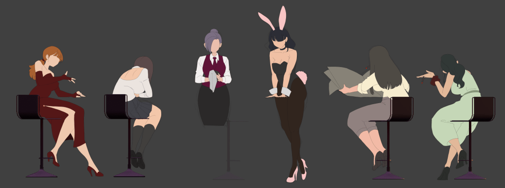 Bar도 마찬가지인데, 비스듬한 의자는 스틸처리, 정면의자는 애니메이션 처리