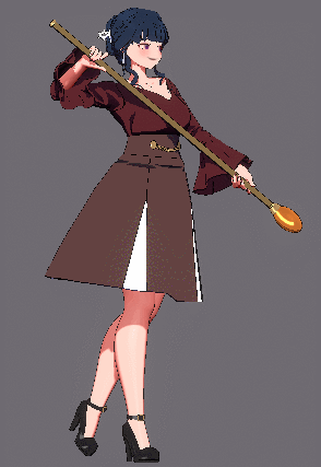 다리를 이처럼 구부린 동작의 경우의 치마는 늘 문제다. 일단 아이시의 치마가 좀 낮은 것도 문제이긴 한데, 그와 상관없이 대부분 문제가 일어나는 구간이 바로 저 부분이다. 로우폴리곤 게임이라면 치마를 다리에 붙여 움직였을텐데 표현이 정교해지다보니 다양하게 새로운 문제가 생긴다. 다음 번이 있다면 반드시 고려해야 할 문제다.